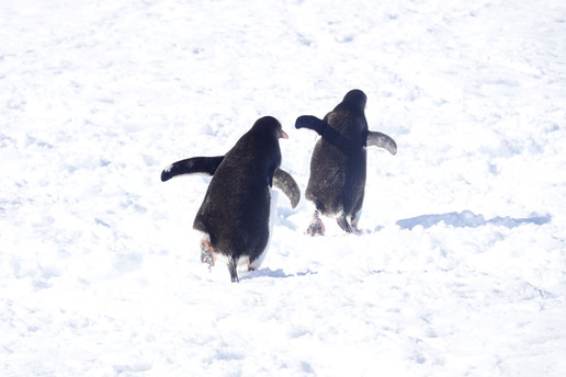 From our kayaks, we saw massive penguin colonies stretching far up into the hills. Penguins build their nests anywhere exposed rock exists along the Antarctic shoreline, and despite their awkward waddling gait, they are surprisingly adept at climbing steep slopes. Coming down is another story—some take slow, careful steps, while others opt for the more efficient method of sliding belly-first down the icy paths. Over the course of the Antarctic summer, they wear down well-trodden "penguin highways" leading to their high-altitude rookeries.