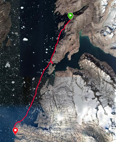 Our expedition route took us through a network of fjords and sounds, with the largest being Sermilik Fjord—a vast, glacier-fed waterway teeming with ice. Over six days of paddling and one day of hiking, we traveled through some of the most remote and stunning landscapes on the planet.
