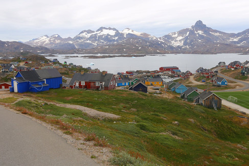 Tasilaq looks like something out of a storybook. The houses, painted in bright primary colors, resemble LEGO blocks scattered across the hillside. From certain vantage points, the town appears to sit on a lake rather than a fjord, as the water widens at its end.